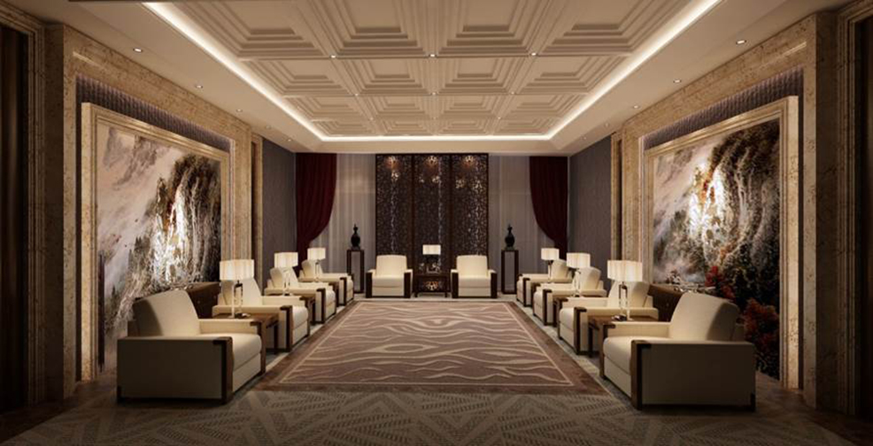 整体风格力求与新华保险已有机构形象统一,如何利用大楼景观优势是重要考量。一层、地下层主要为大楼公共接待、食堂、会议中心,设计规格提高,力求大气、现代、沉稳。